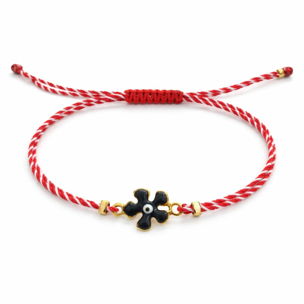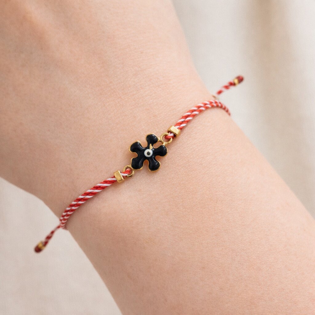 Χειροποίητο βραχιόλι Μάρτης με στοιχείο λουλούδι-μάτι με σκούρο μπλέ σμάλτο.