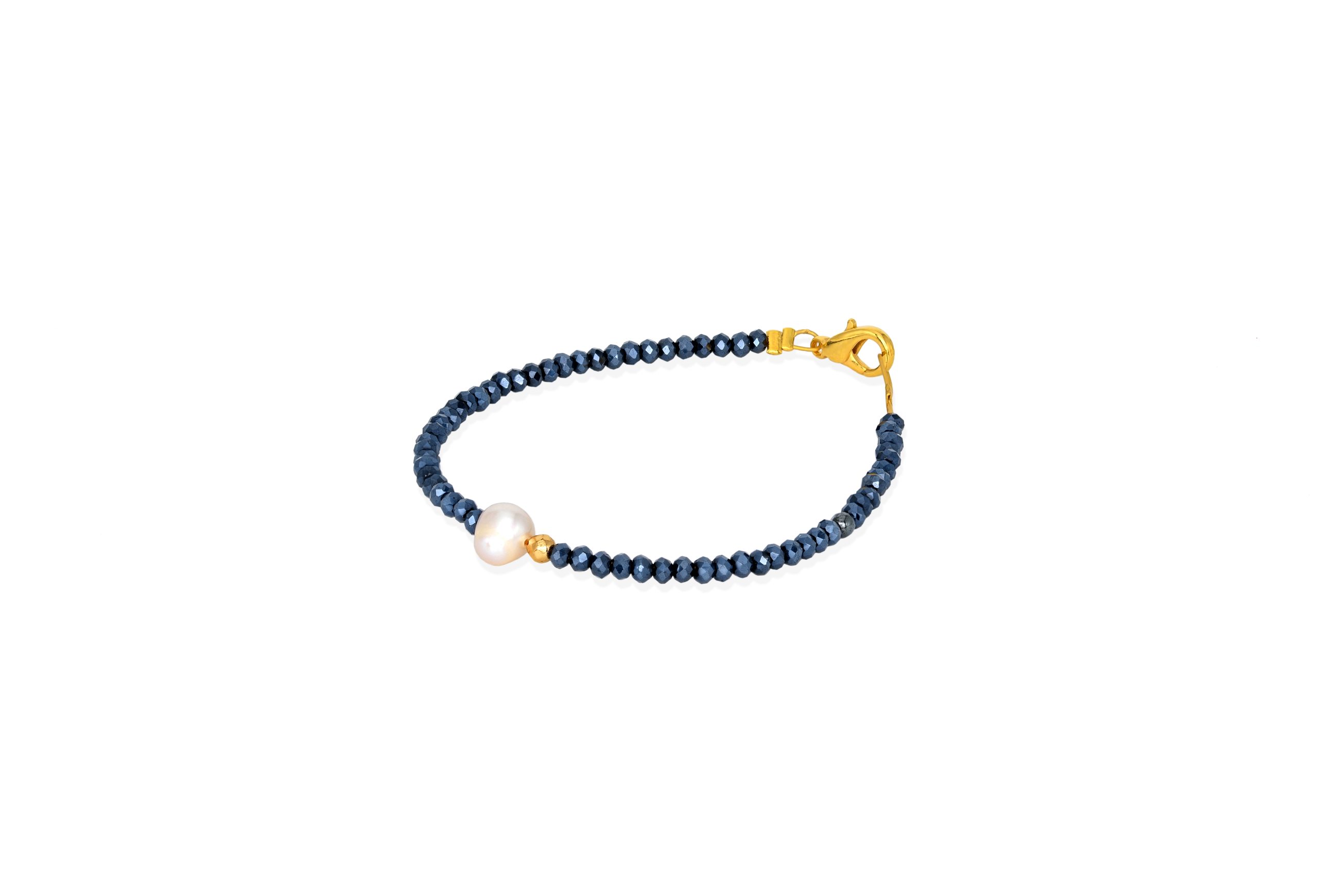 Βραχιόλι από μαύρα μικρά κρυσταλλάκια και λευκό μαργαριτάρι του γλυκού νερού.